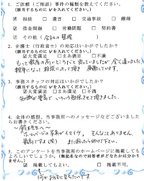 もっと敷居の高いところだと思っていましたが全く違いました。親身になって相談にのって頂き感謝しています。